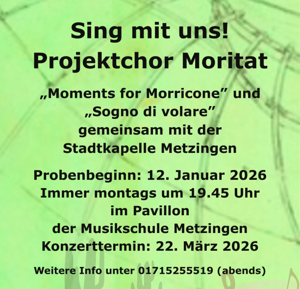 Wir sind ein junger, aktiver Chor, eingegliedert in den "Liederkranz Eintracht Metzingen e.V.". Unser abwechslungsreiches Repertoire bewegt sich von modernen Bereichen wie Rock, Pop, Gospel, Musical und Swing bis hin zu klassischen und geistlichen Werken.